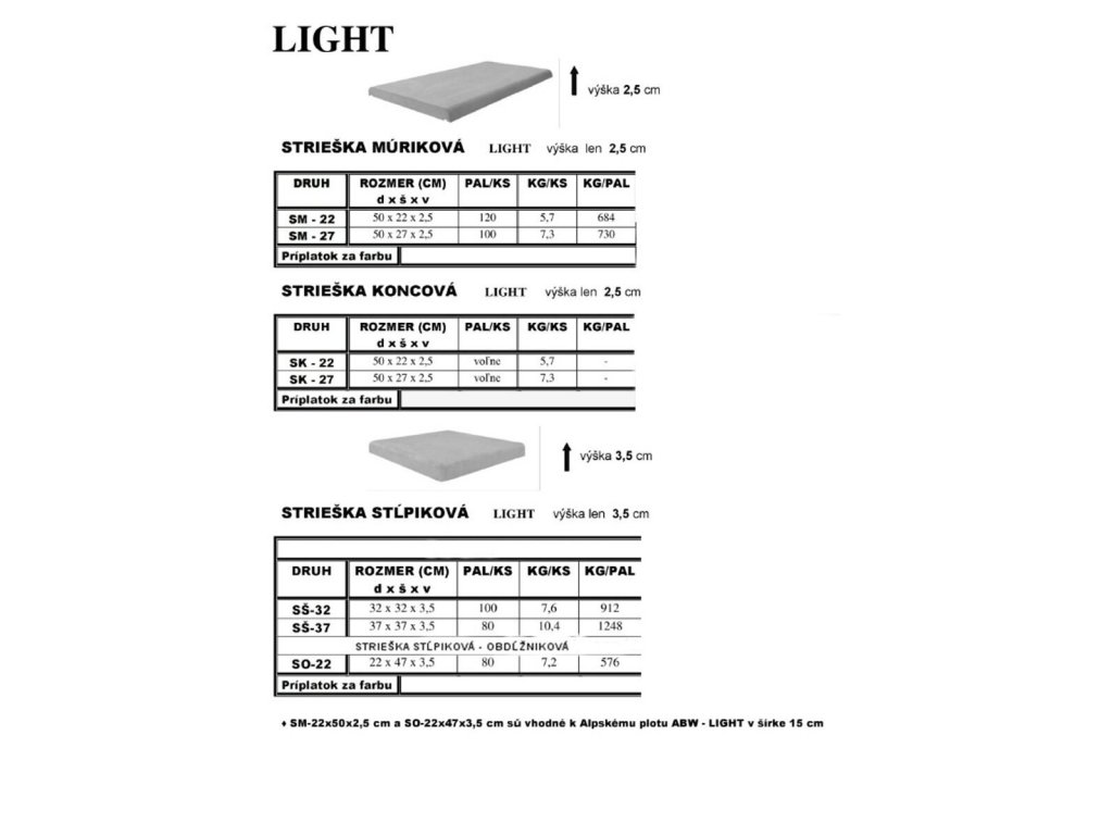 Kategória: | Betónové striešky rovné LIGHT farebné |